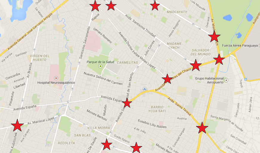 – Santa Teresa (zwischen Aviadores del Chaco und Madame Lynch)